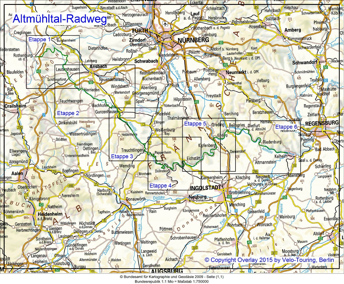 Bitte wählen Sie anhand der Karte eine der - in dieser Übersicht nur skizzierten - Etappen aus und klicken Sie auf den entsprechenden Link in der Spalte links.